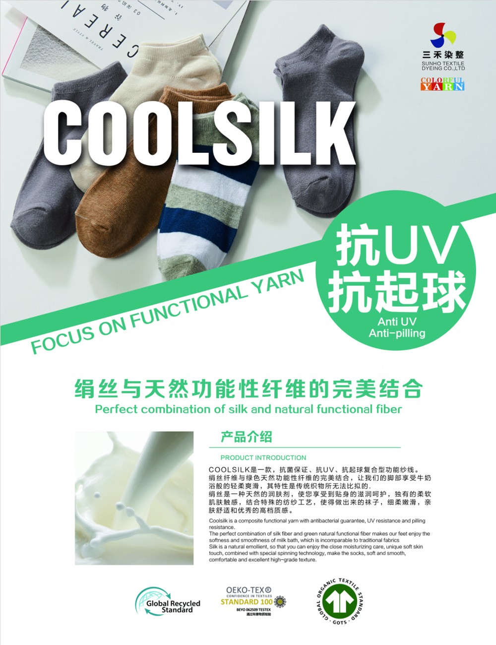 COOLSILK是一款,抗菌保濕、抗 UV、抗起球復合型功能紗線(xiàn)。