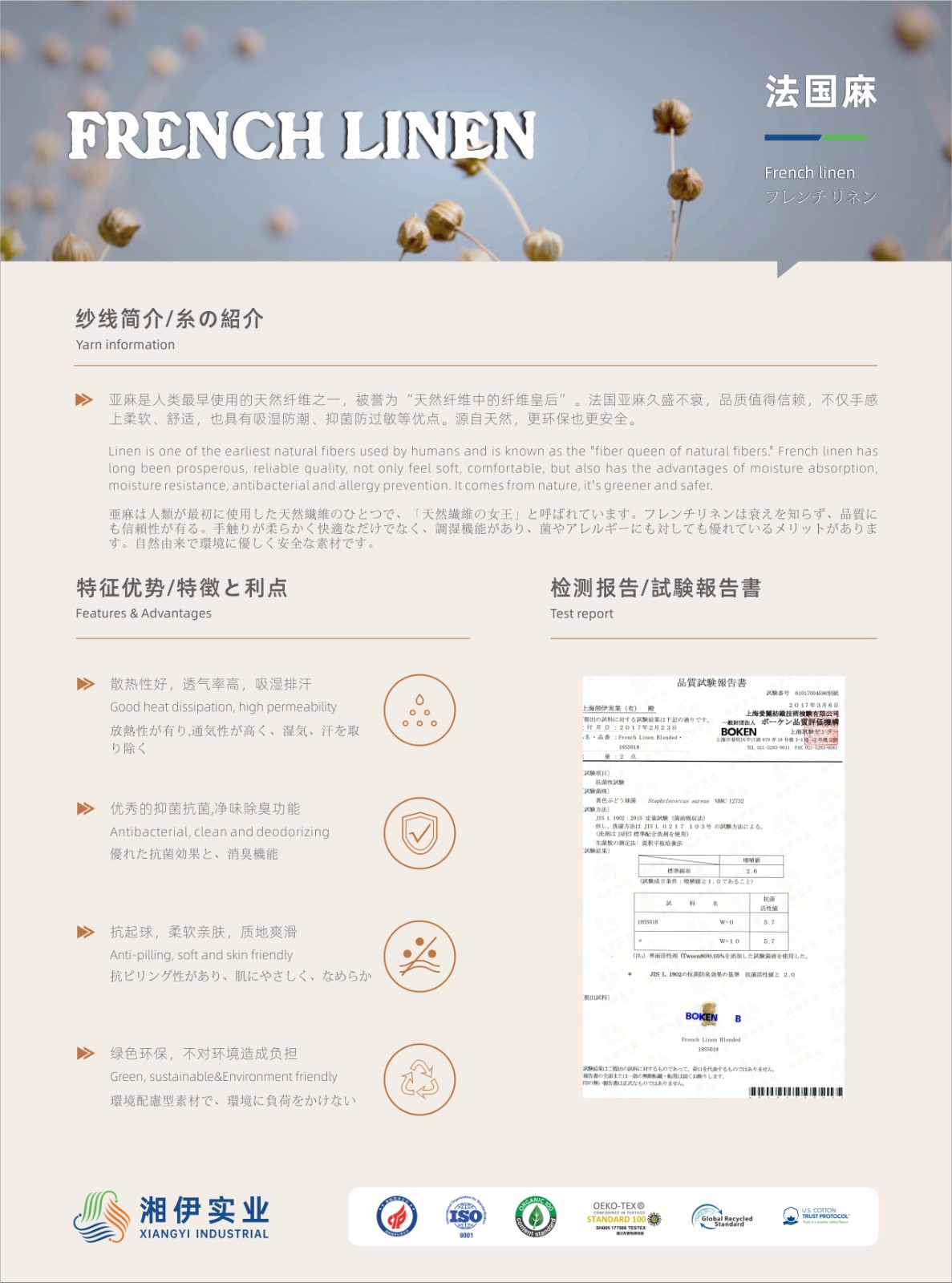亞麻是人類(lèi)最早使用的天然纖維之一,被譽(yù)為“天然纖維中的纖維皇后”。法國亞麻久盛不衰,品質(zhì)值得信賴(lài),不僅手感亞麻是人類(lèi)最早使用的天然纖維之一,>上柔軟、舒適,也具有吸濕防潮、抑菌防過(guò)敏等優(yōu)點(diǎn)。源自天然,更環(huán)保也更安全。
